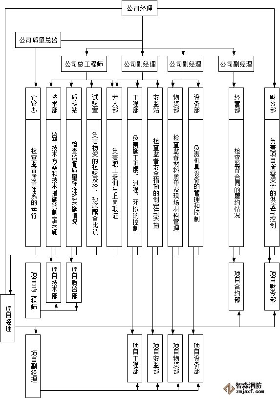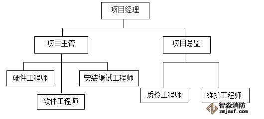 組建工程項目經理部來負責本工程的施工組織和管理工作,其成員為:項目經理、項目工程師、技術負責人、質安員、材料設備員等。