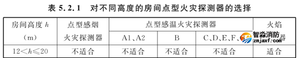 5.2.1 對不同高度的房間,可按表5.2.1選擇點型火災探測器。