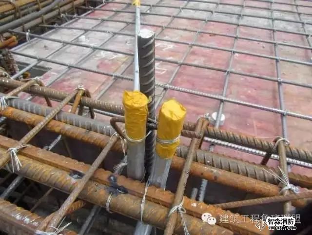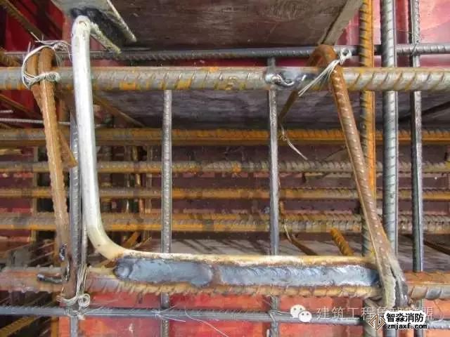淘汰傳統的預留法如木盒、鐵皮盒、塑料套管,避免跑模、變形等弊端,采用可提式鋼管盒預留法,材料利用廢舊鋼管,制作時,套管高度為250mm,套管管徑比圖紙設計的管徑大兩個等級,在離預留盒上口80mm處焊接一個Φ6圓鋼煨成的提手,以備混凝土達到一定強度后便于拔出,同時在預留盒的底口用鋼板封堵好。 蘇州智淼消防工程安裝公司