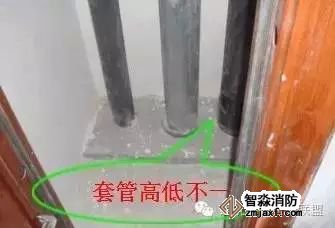 (1)嚴格執行《建筑給水排水及采暖工程施工質量驗收規范》要求:安裝在樓板內的套管,其頂部應高出裝飾地面20mm;安裝在衛生間及廚房內的套管,其頂部應高出裝飾地面50mm;同部位有多根管道,其套管高出裝飾地面的高度應一致。