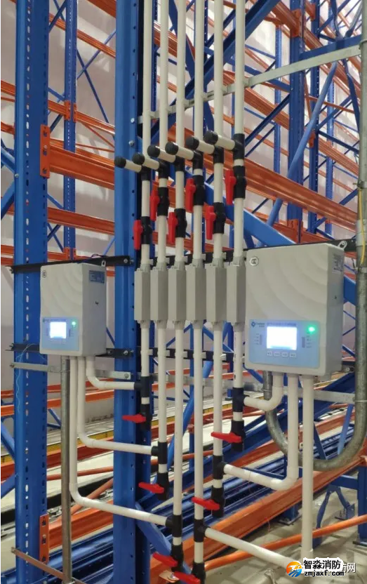 15.8.3物流建筑高度大于12m的室內空間、低溫場所及需要進行火災早期探測的場所,宜設置吸氣式感煙火災探測器。在貨架內部的垂直方向上,每隔12m應至少設一層采樣管網。