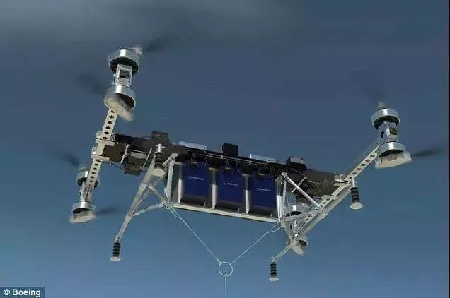 這架無(wú)人機(jī)可以承載兩頭小象的重量。這艘飛機(jī)重達(dá)339公斤(747磅),但還能攜帶226公斤(500磅)的貨物。波音公司表示,它可能會(huì)利用無(wú)人機(jī)在未來(lái)轉(zhuǎn)移重型貨物。這個(gè)身形矯健的無(wú)人機(jī)長(zhǎng)4.6米(15英尺),寬5.5米(18英尺),高1.2米(4英尺)。從圖中可以看出,它有8個(gè)跟直升機(jī)一樣的旋翼,可以垂直起降。它是由電力推進(jìn)系統(tǒng)驅(qū)動(dòng)的。需要運(yùn)輸?shù)呢浳铮梢杂秒娎|連接到無(wú)人機(jī)上。