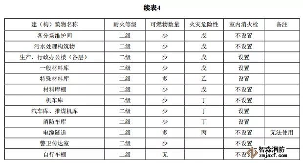 表4 建(構)筑物室內消火栓設置